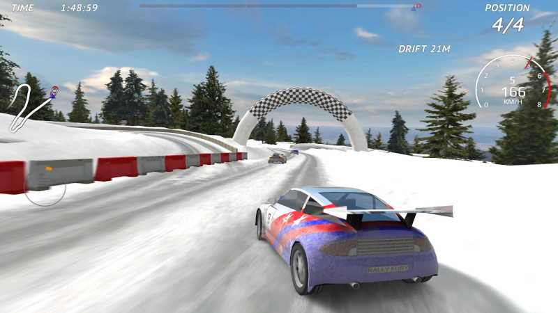 Drift, boost, push your rally car to the limit. Test your driving skills on dirt and asphalt tracks. Race in time based challenges, against CPU opponents or other players online.